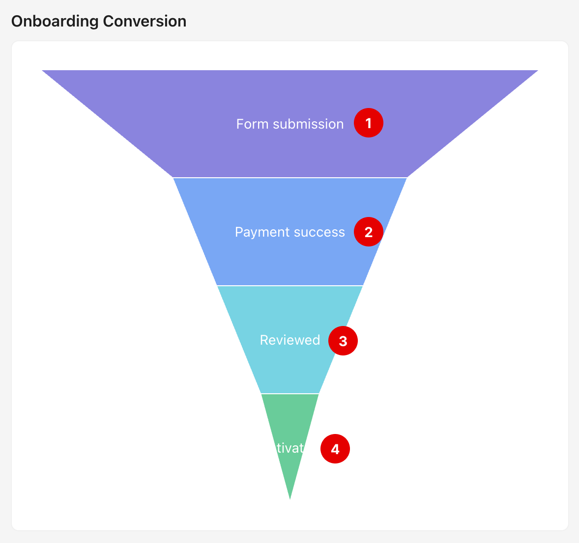 The Onboarding Conversion funnel shows how users move through the membership onboarding process. The funnel includes four main stages: