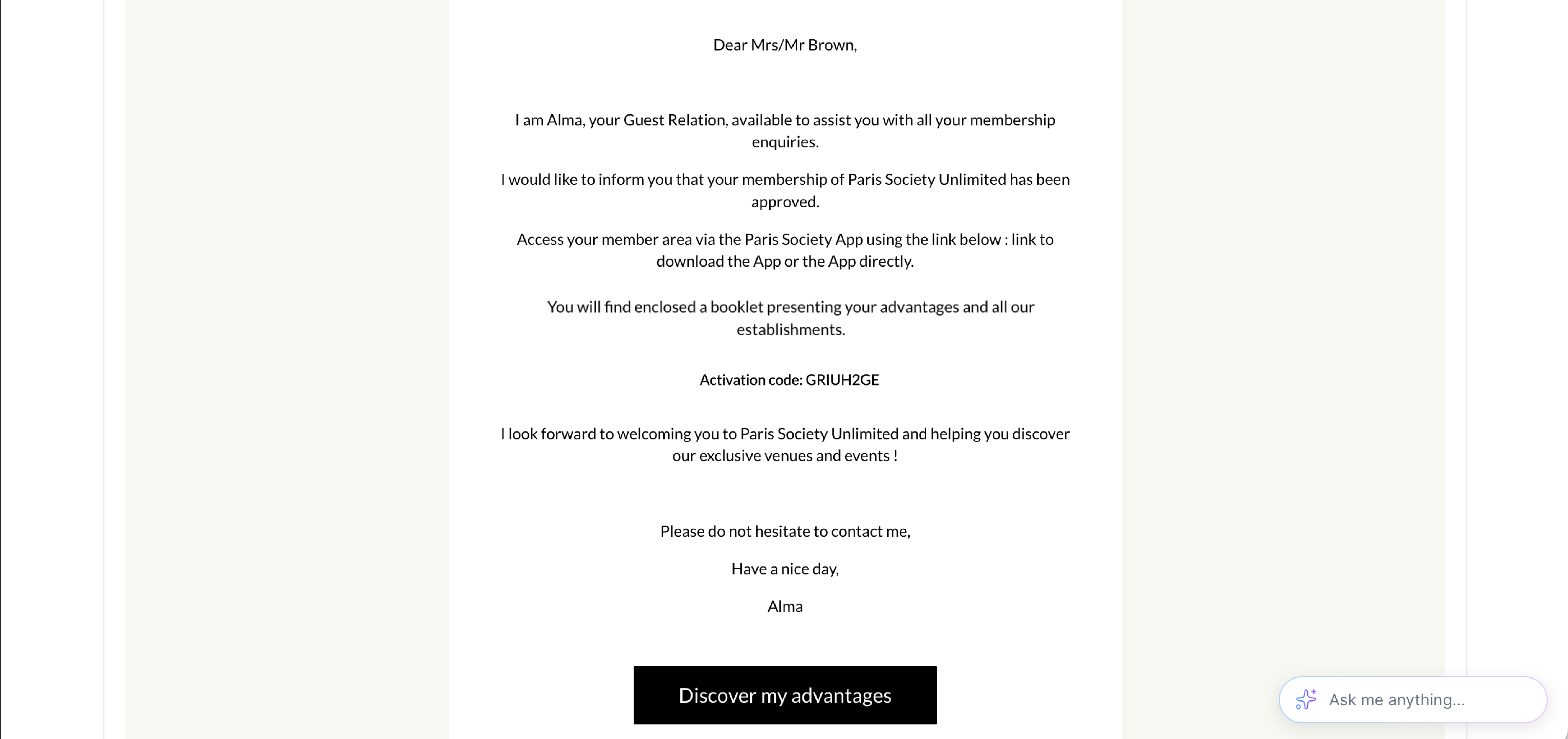 This will be sent when the customer’s PSP finishes capturing the payment successfully, and the customer becomes a member. An automatic mail will be sent. Here you can insert dynamic variables. For example, the variable %CODE% can be used to display the recipient’s dedicated activation code.