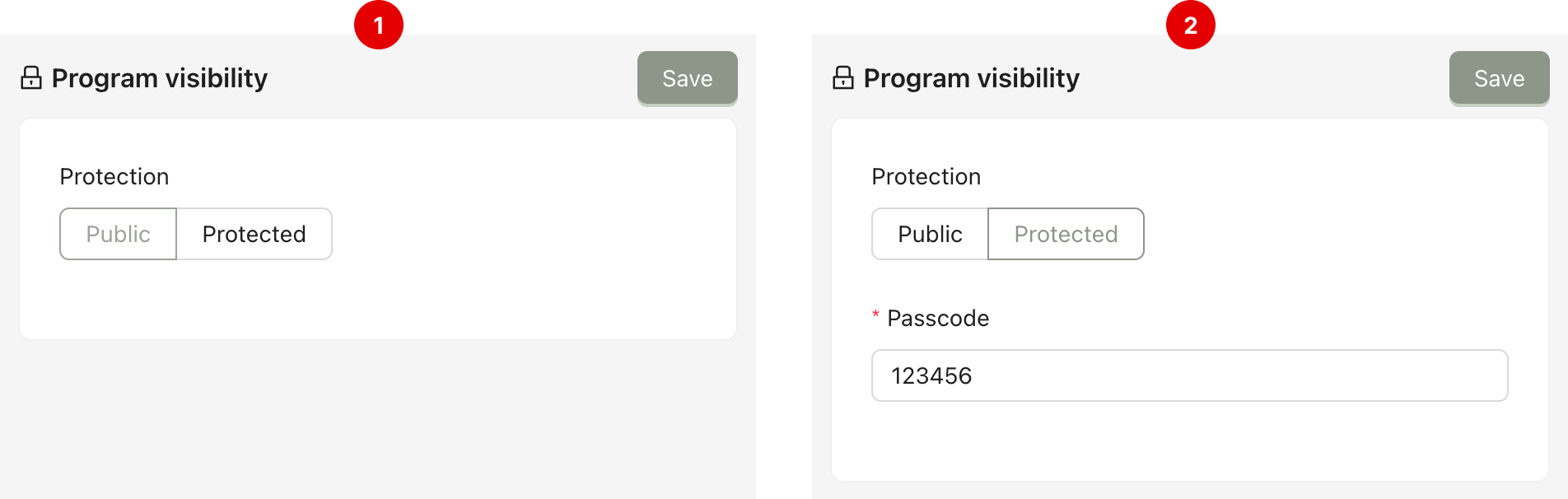 Program visibility: Configure it as protected or public.