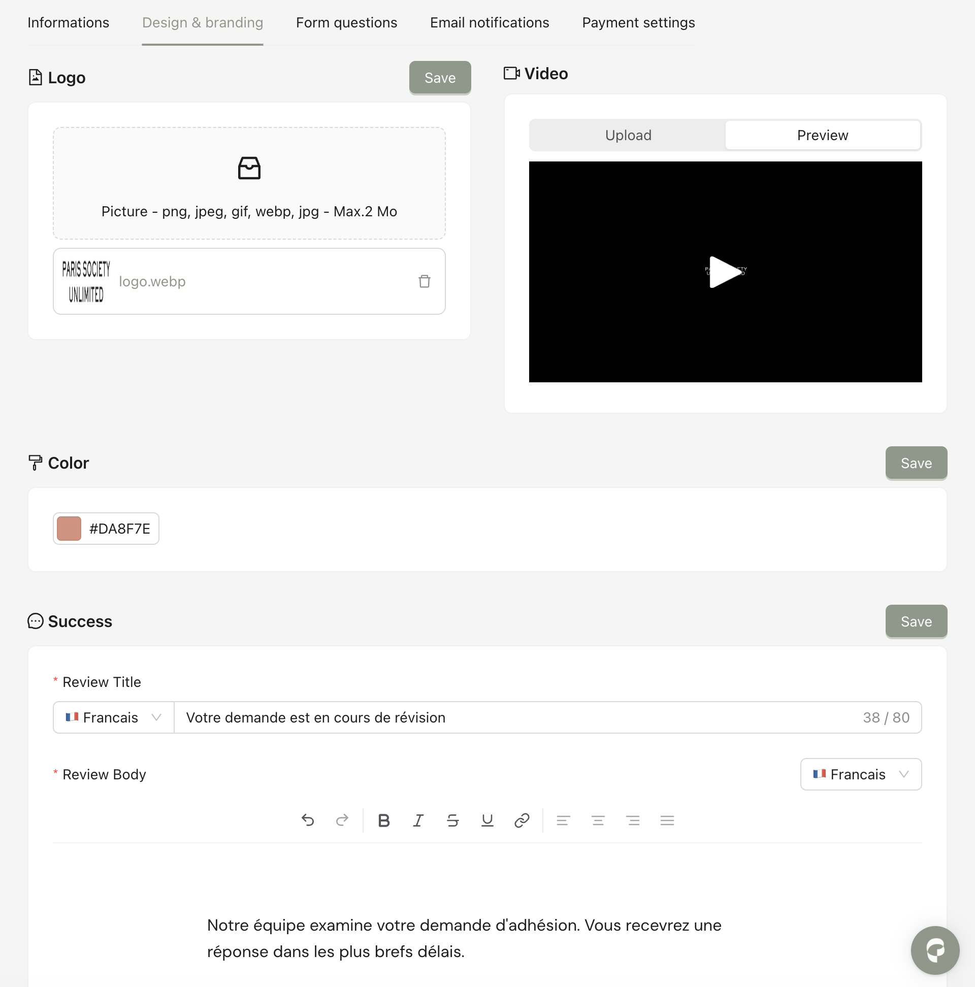 This will be sent when the customer has submitted the form and is waiting for the responsible person of the brand to review it. You can use variables to customize it for each customer.