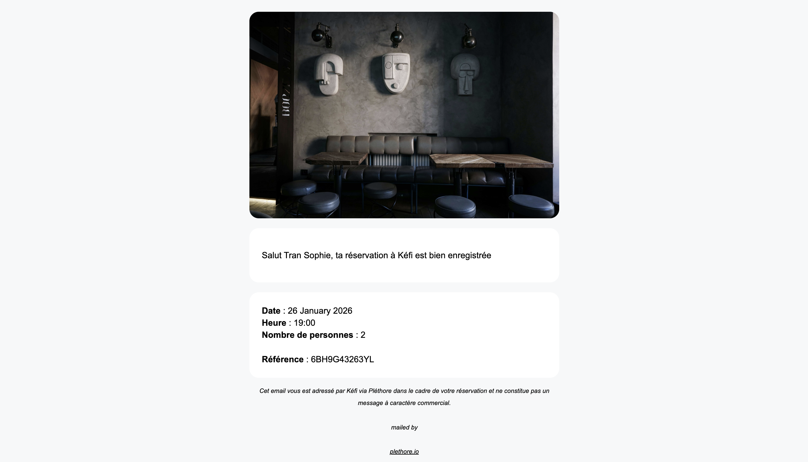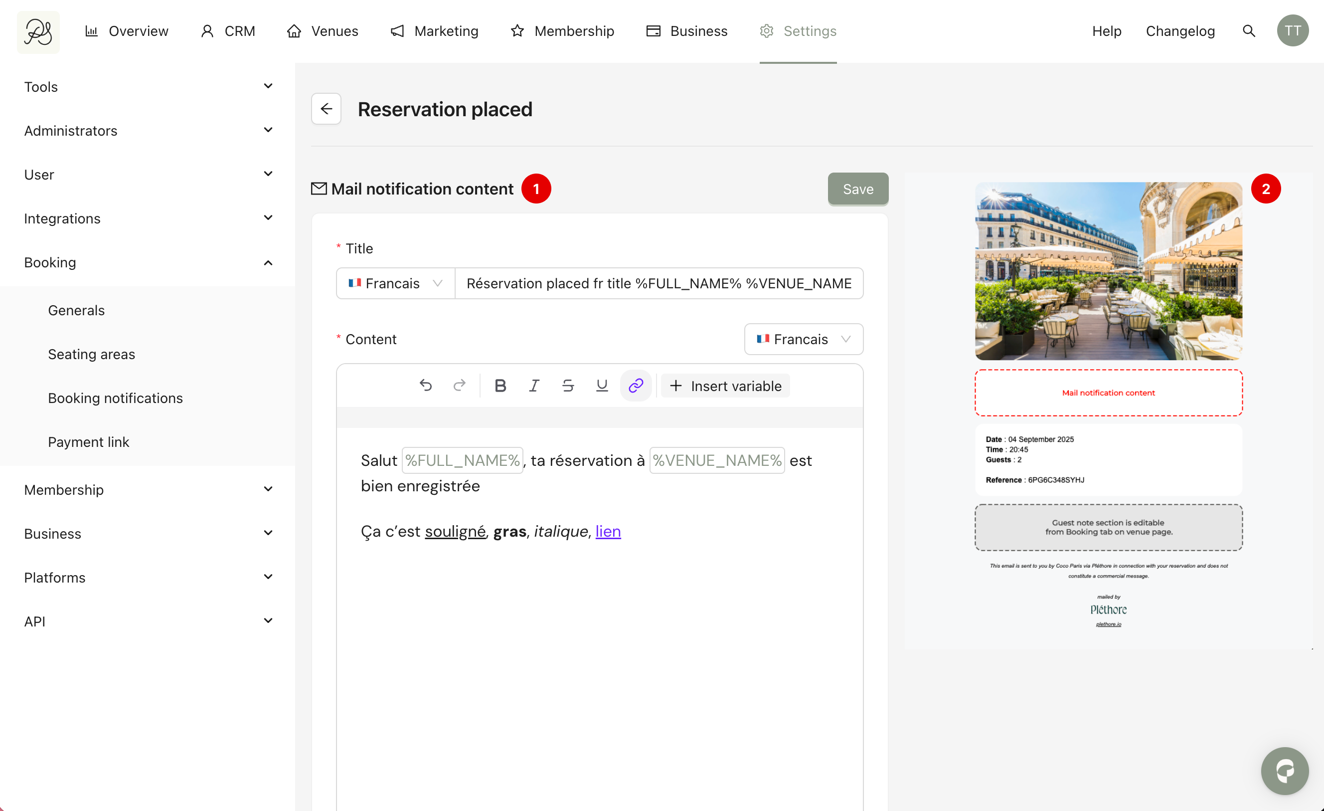 Pléthore allows you to automate booking notifications related to reservations made in the application.