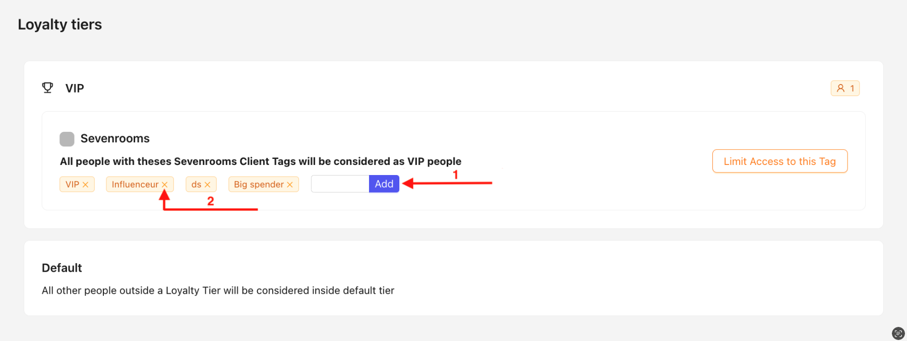 Remove a tag from an existing Loyalty Tier at any time by clicking on the cross.