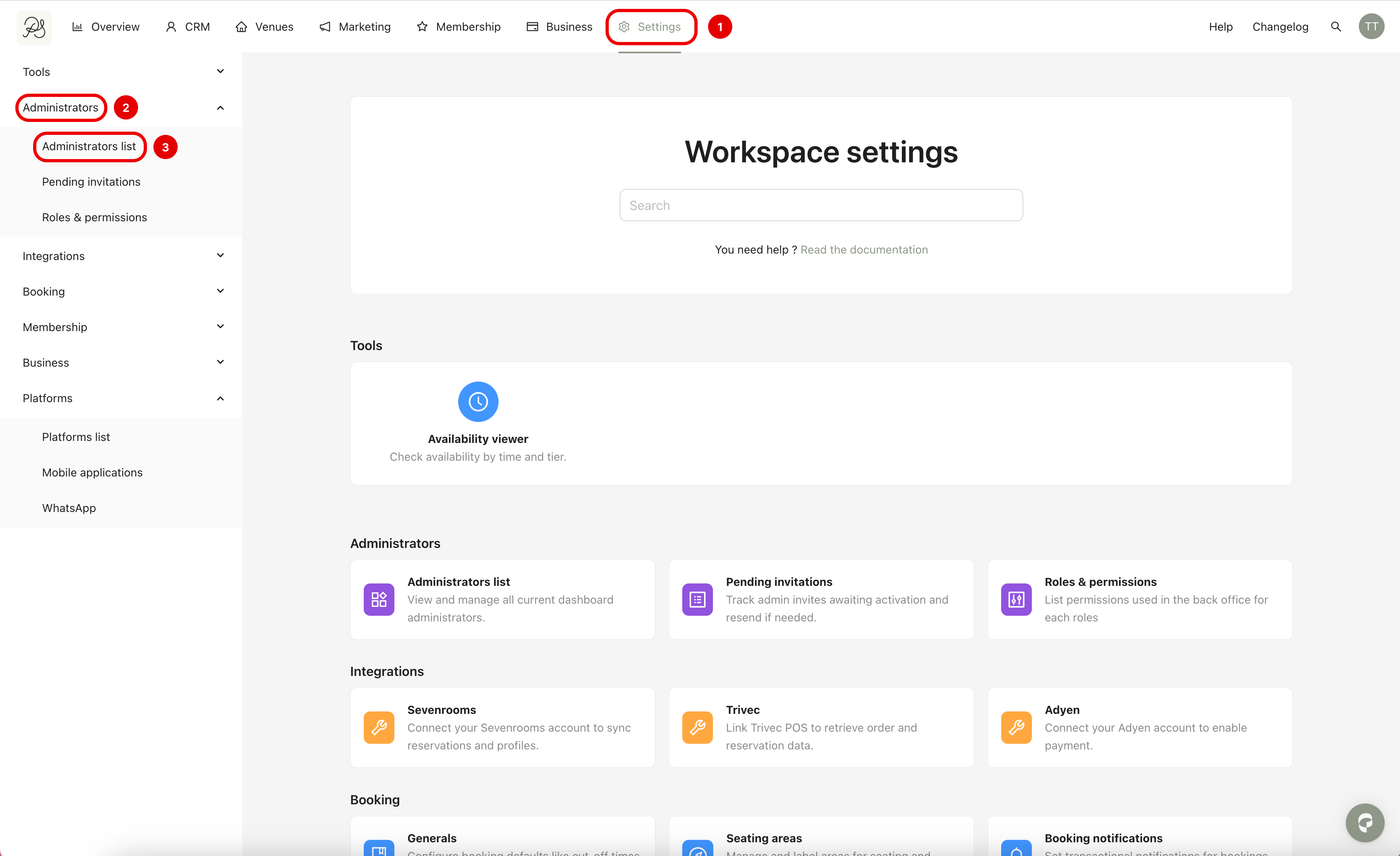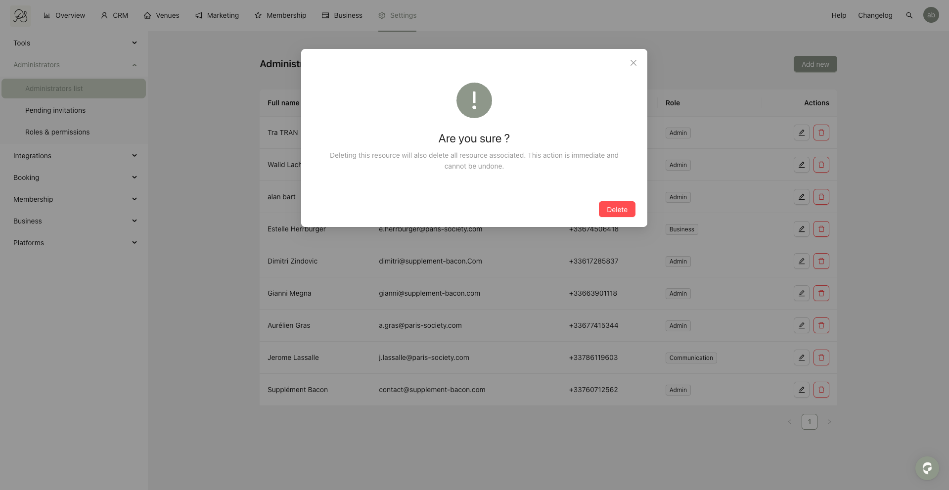 Step 1: To delete an administrator, go to Settings → Administrators → Administrators list.