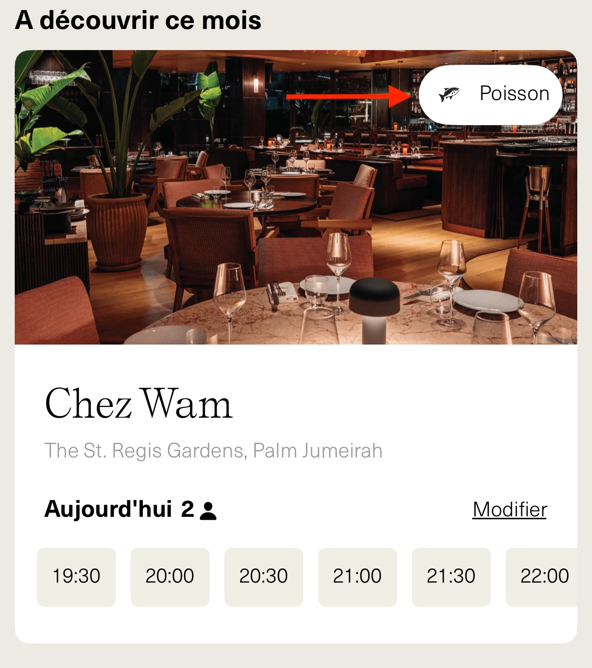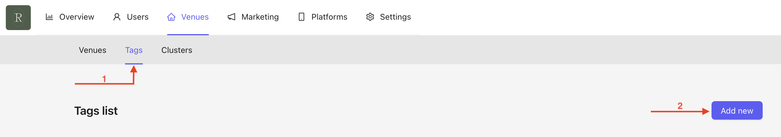 A tag is a visual element displayed on a venue cell, consisting of an icon and a descriptive text. It helps users quickly identify a key feature of the venue, improving visibility and navigation within the app.