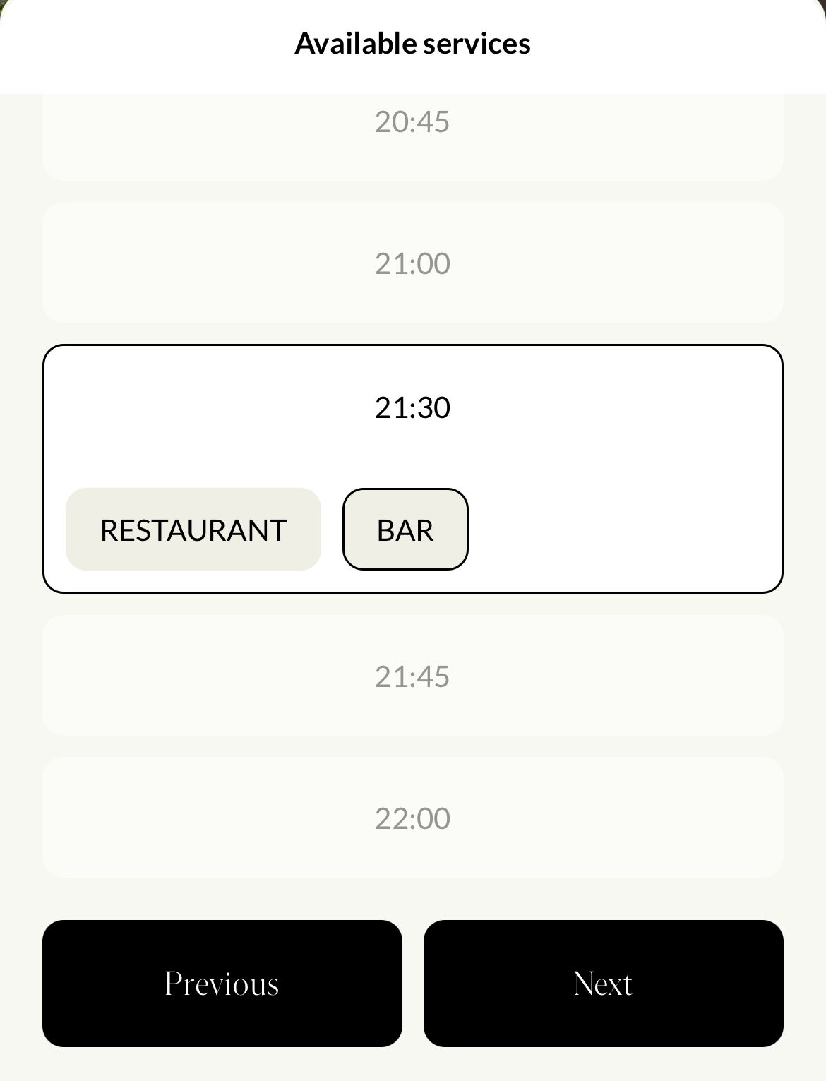 Settings Areas allow you to define the different areas of a venue so that users can select where they would like to make their reservation. Below is an example from the mobile application. The available Settings Areas for this venue are “Restaurant” and “Bar”.