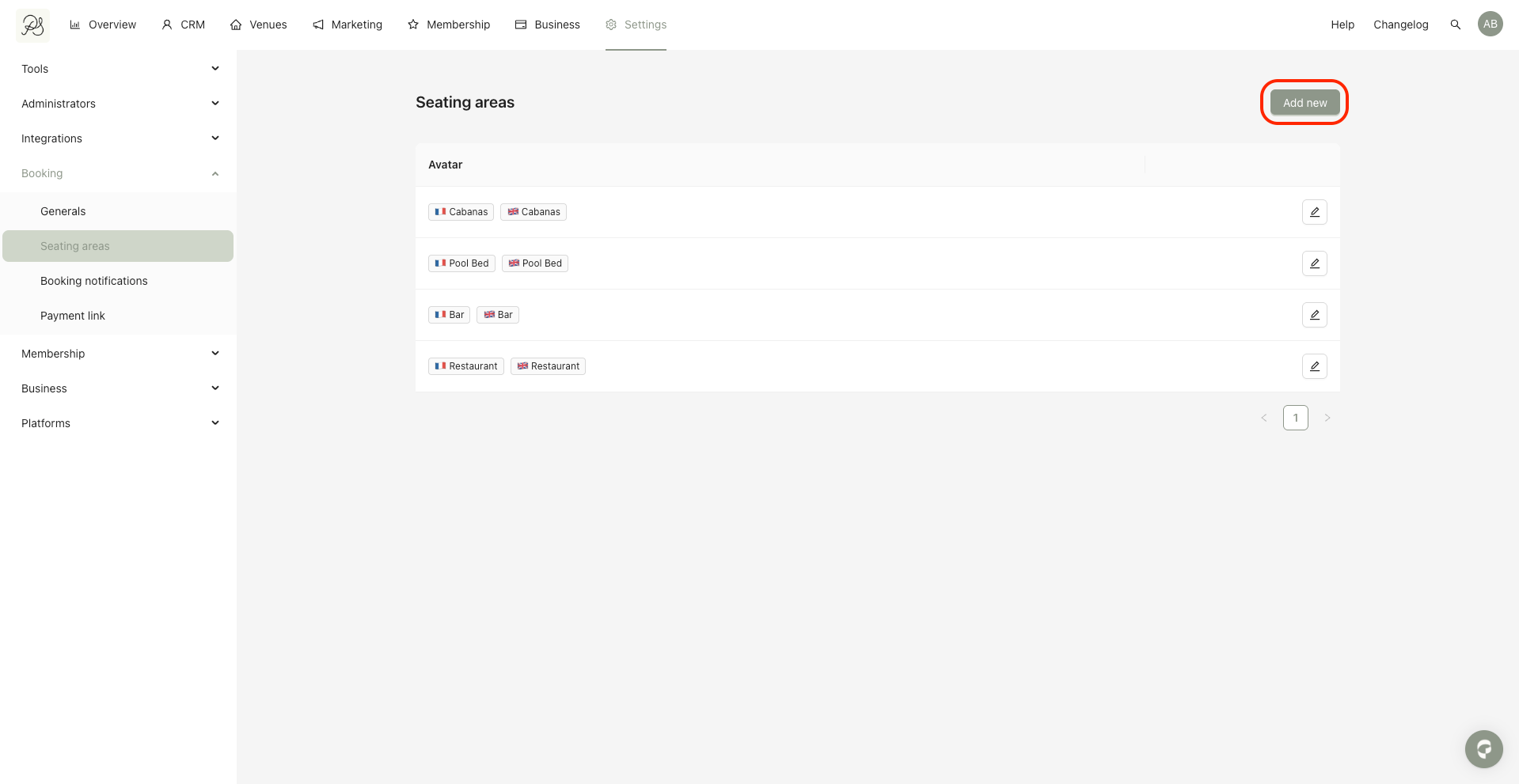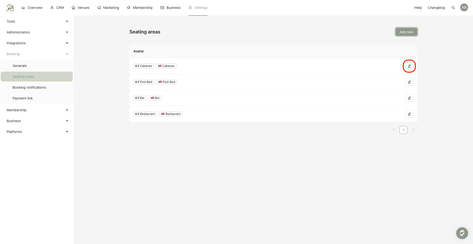 Step 1: Click the edit (pencil) icon next to the Seating Area you want to modify.