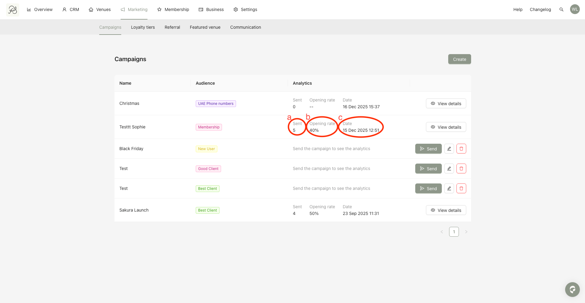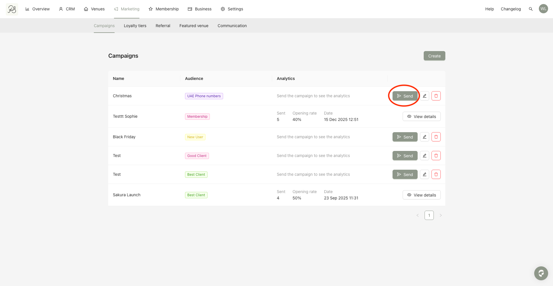 Step 1: Go to Marketing (1) → Campaigns (2).