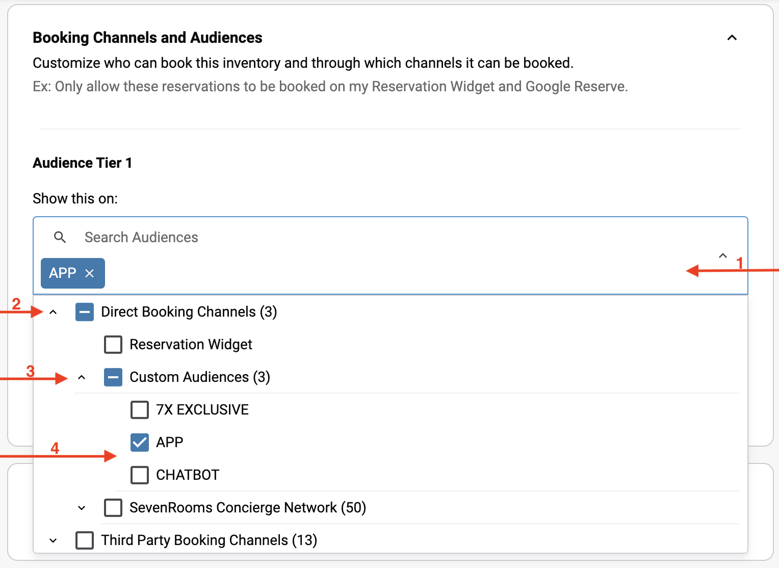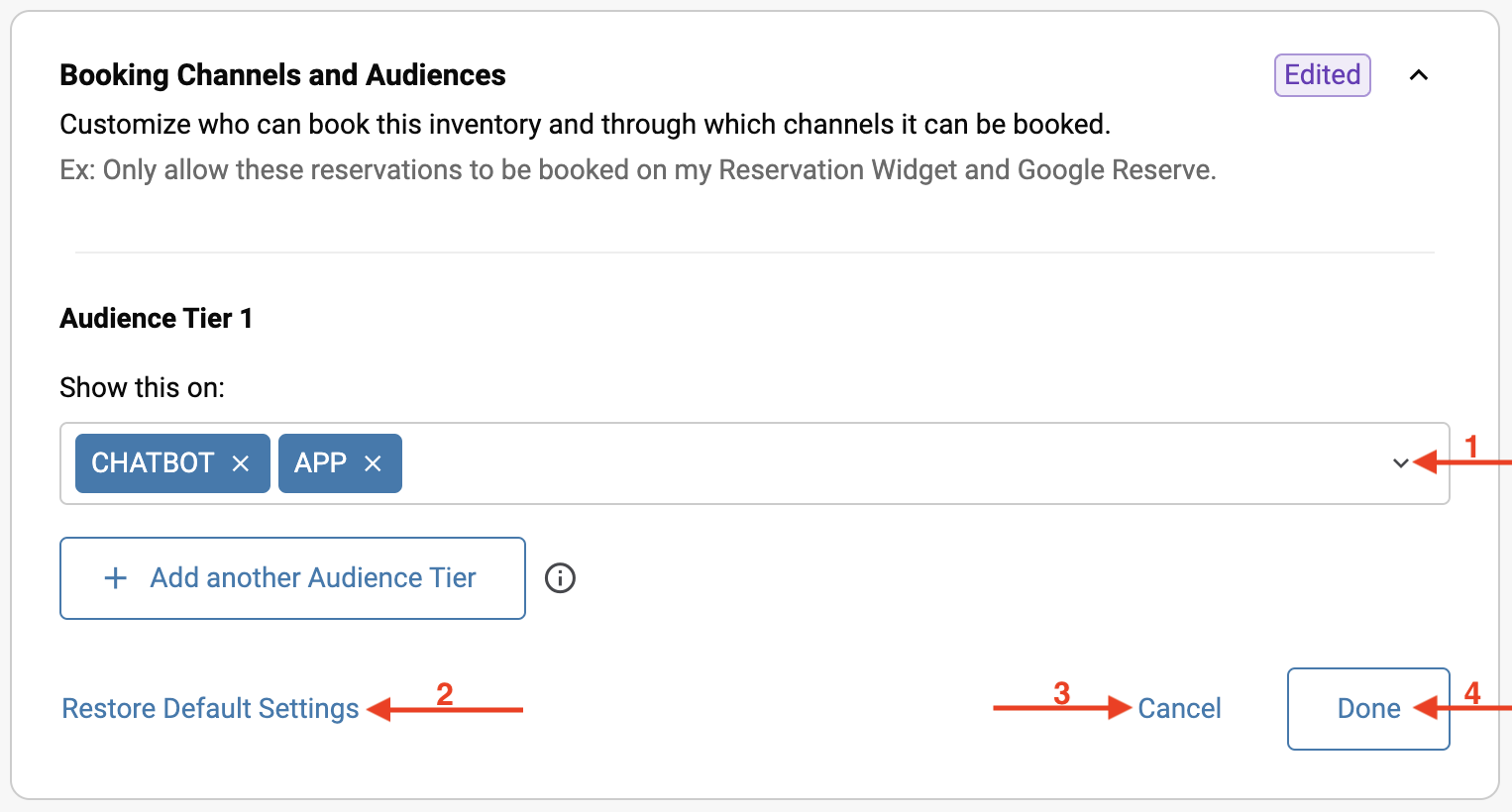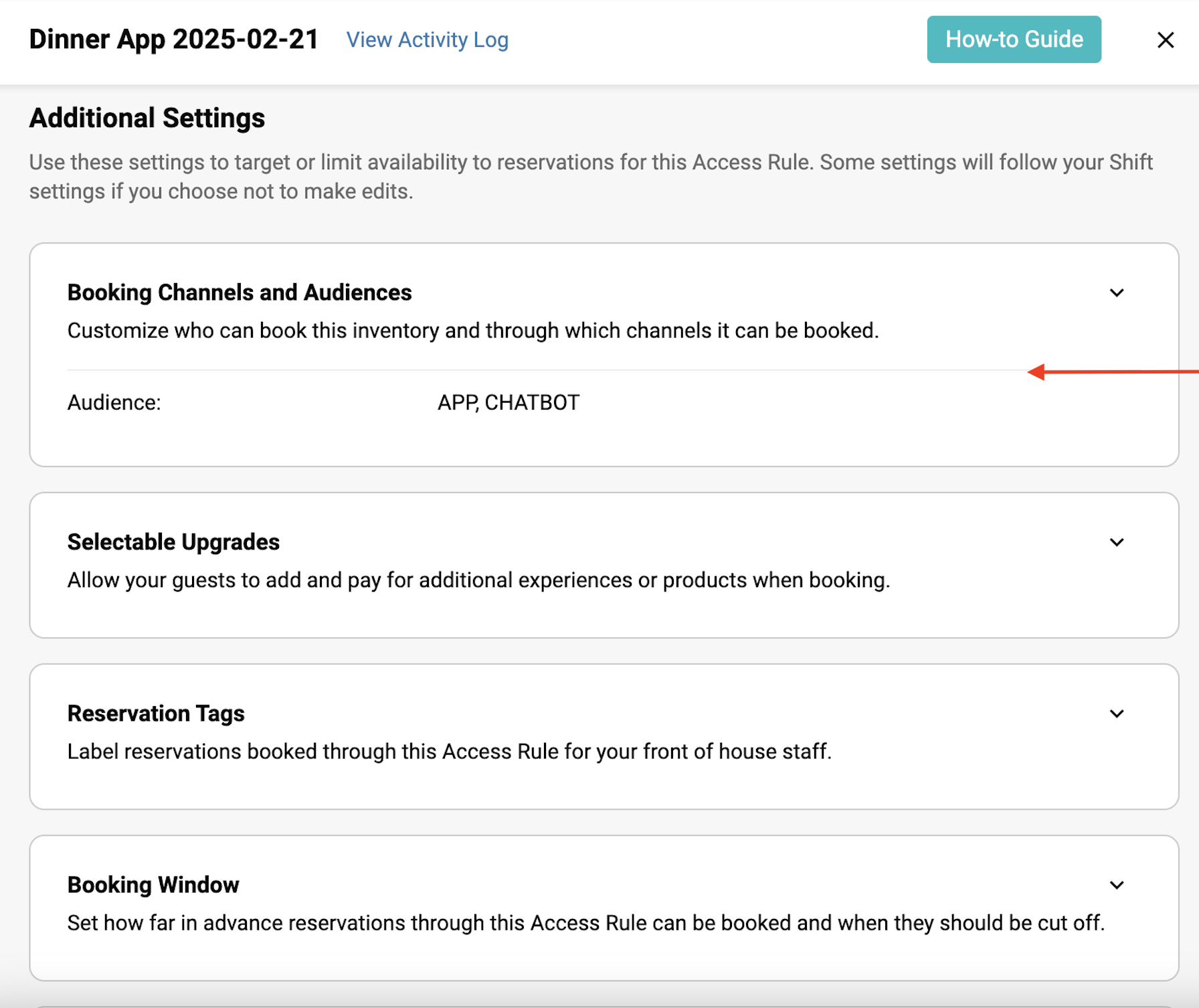 To do this, make sure you are in the Additional Settings section of your access rule settings, and click on Booking Channels and Audiences :