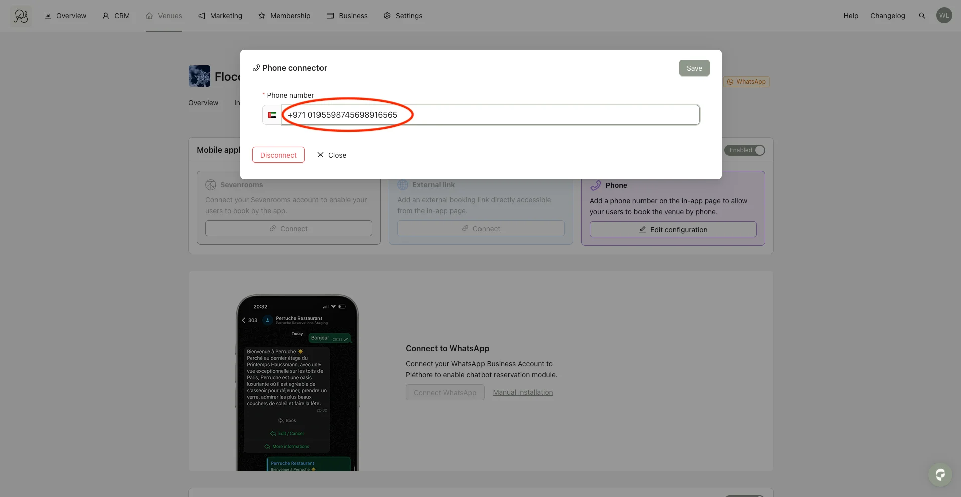 The Phone connector allows a phone number to be displayed in the mobile application when a user wants to make a reservation.