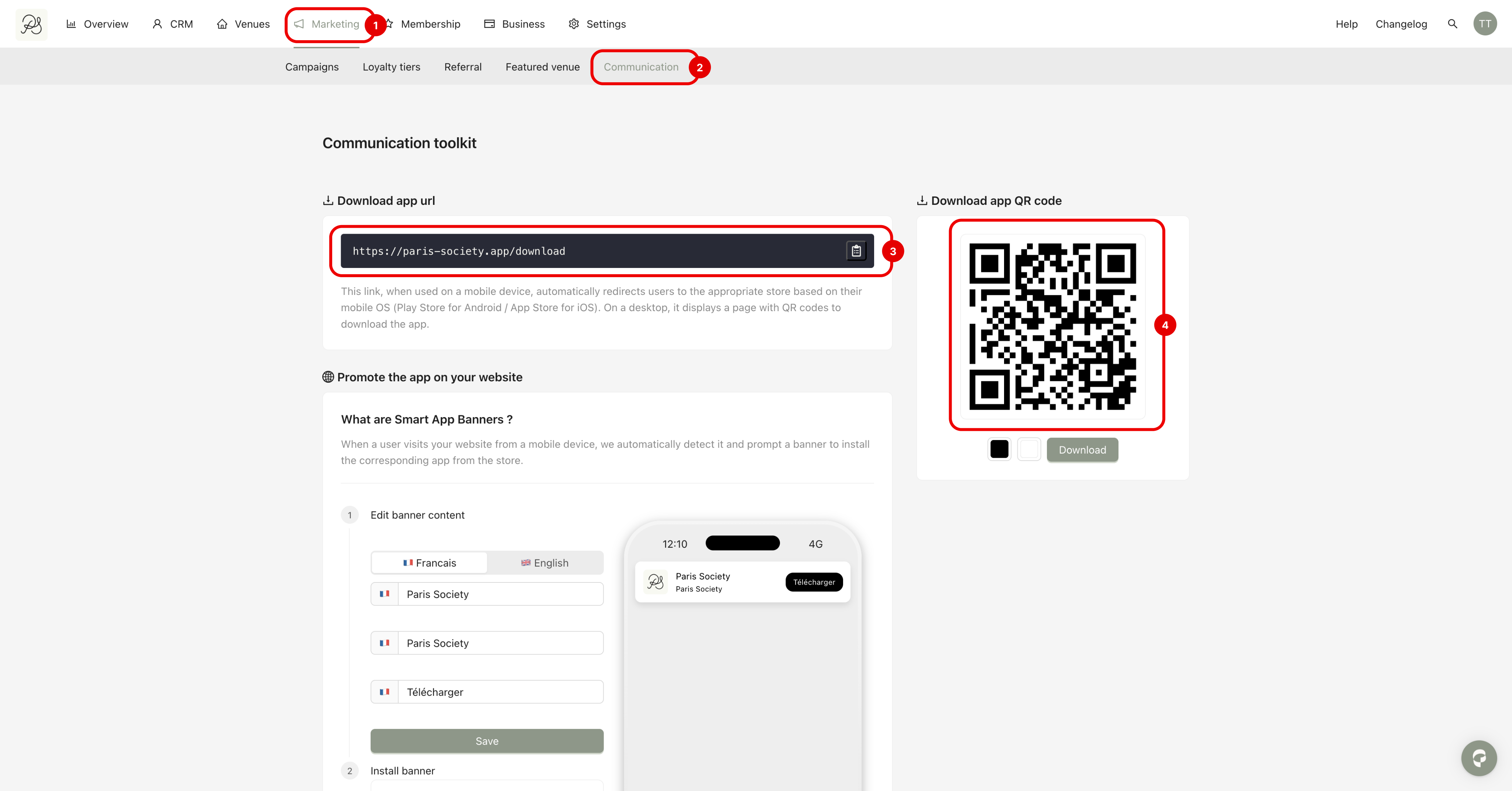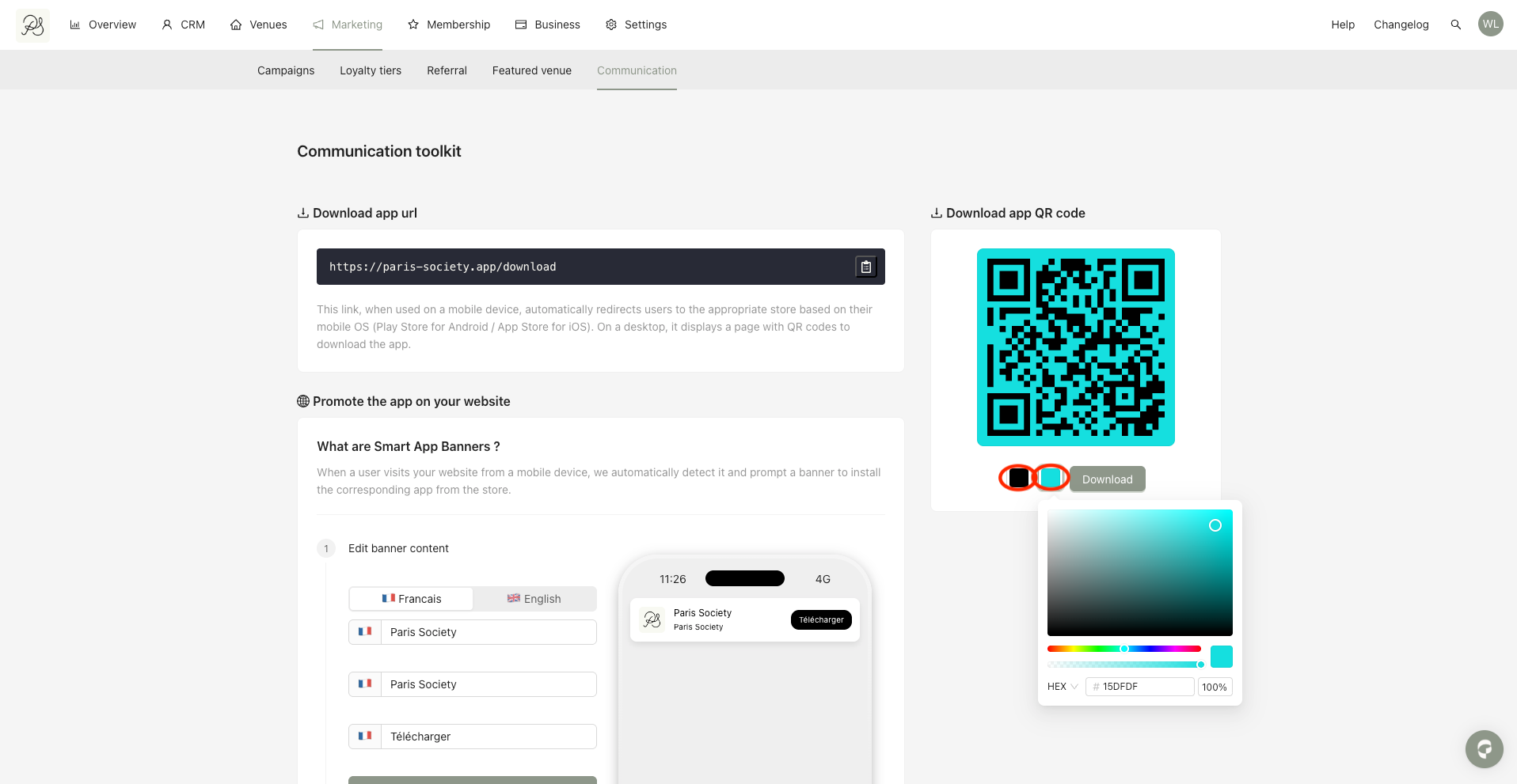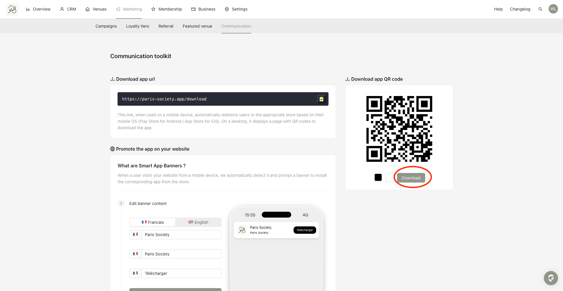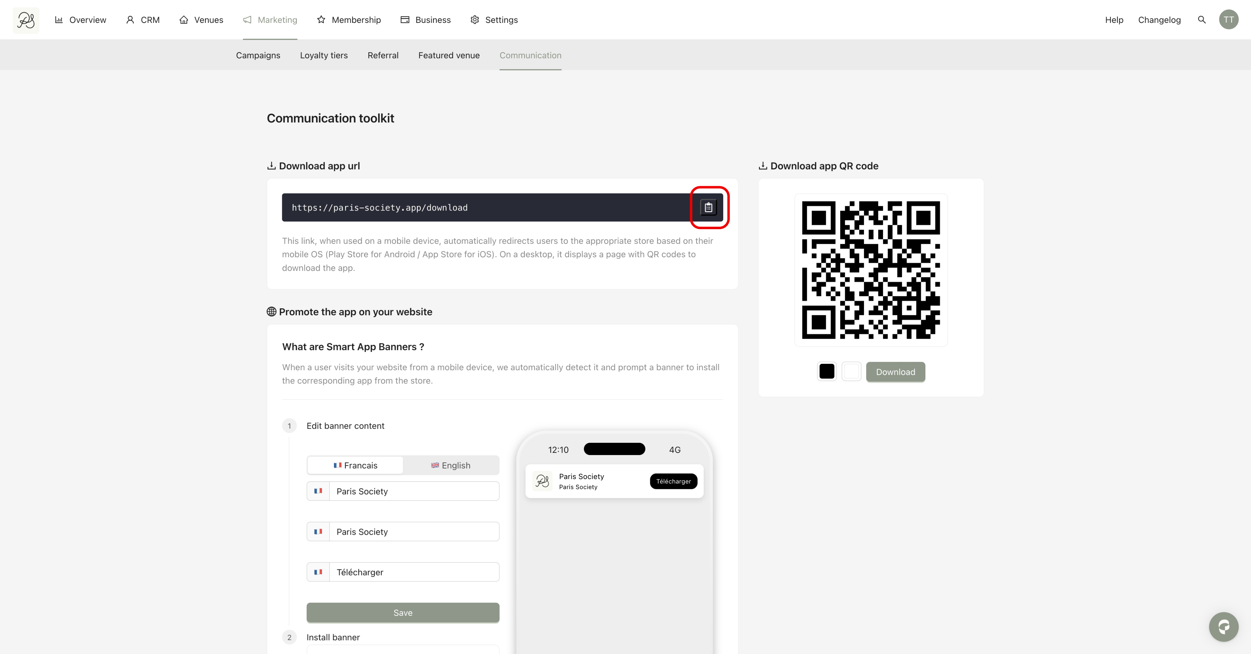 If you don’t want to use the QR code, You can copy directly the app download link in the page by clicking the button beside the link.