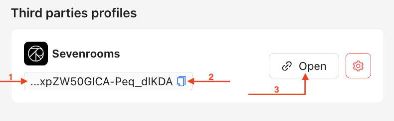 Third-Party Profiles : Displays the SevenRooms profile linked to the user.