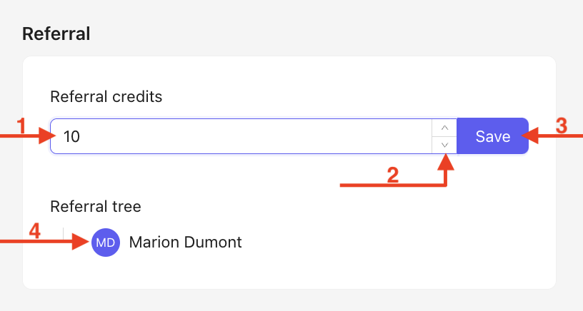 Referral Credits is a sponsorship system that allows a user to refer one or more people by granting them a predefined number of credits. You can set this amount directly from the User Page.