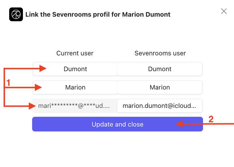 Linked SevenRooms Profile : Displays the link to the user's SevenRooms profile. If the link appears in red, there is a linking issue.