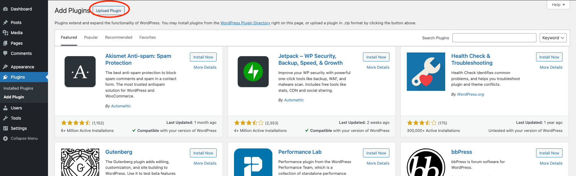 Step 3: Click Upload Plugin