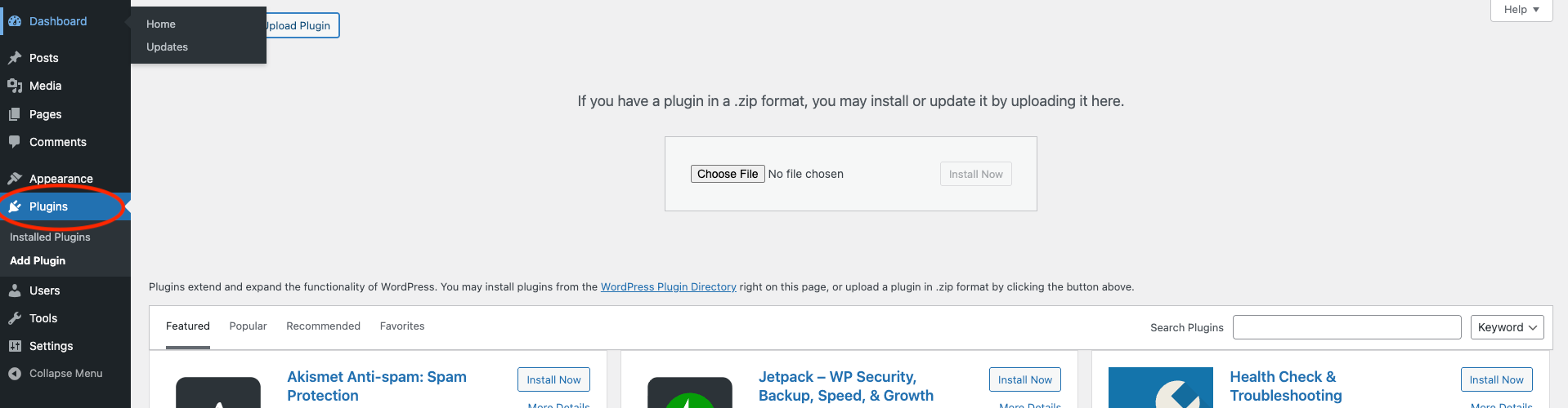 Step 2: In your WordPress dashboard, go to Plugins.