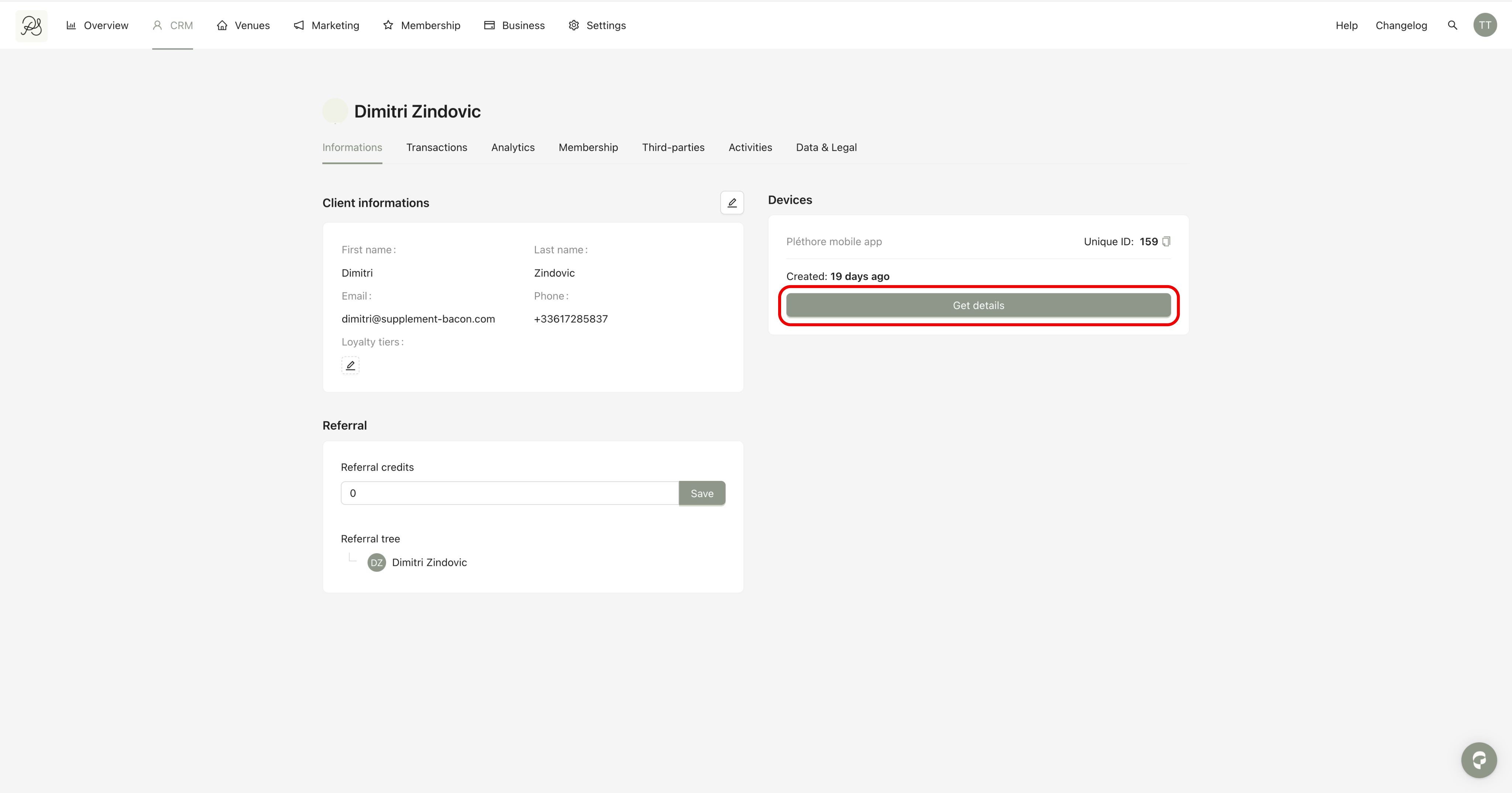 Step 2: On the user detail page, make sure you are on the Information tab. In the Device section, click Get details.