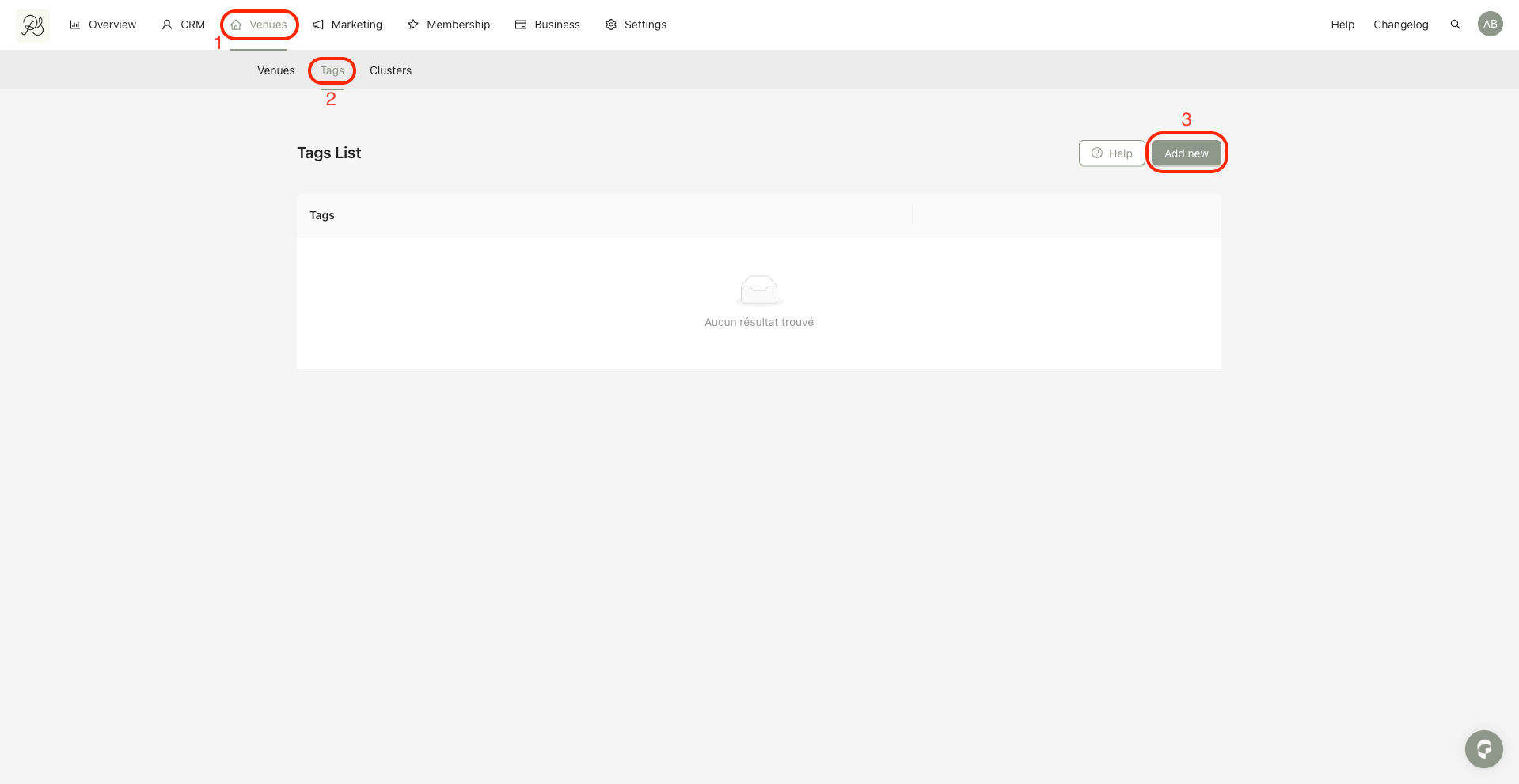 Step 1: Go to the Tags tab (1), then click Add new (2).