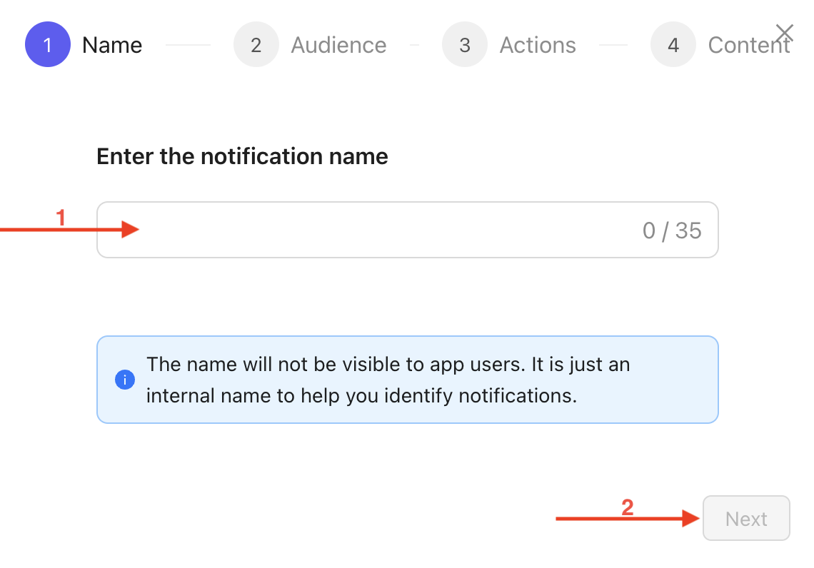 Enter the name of your Push Notification. This is an internal name and will not be visible to App users.