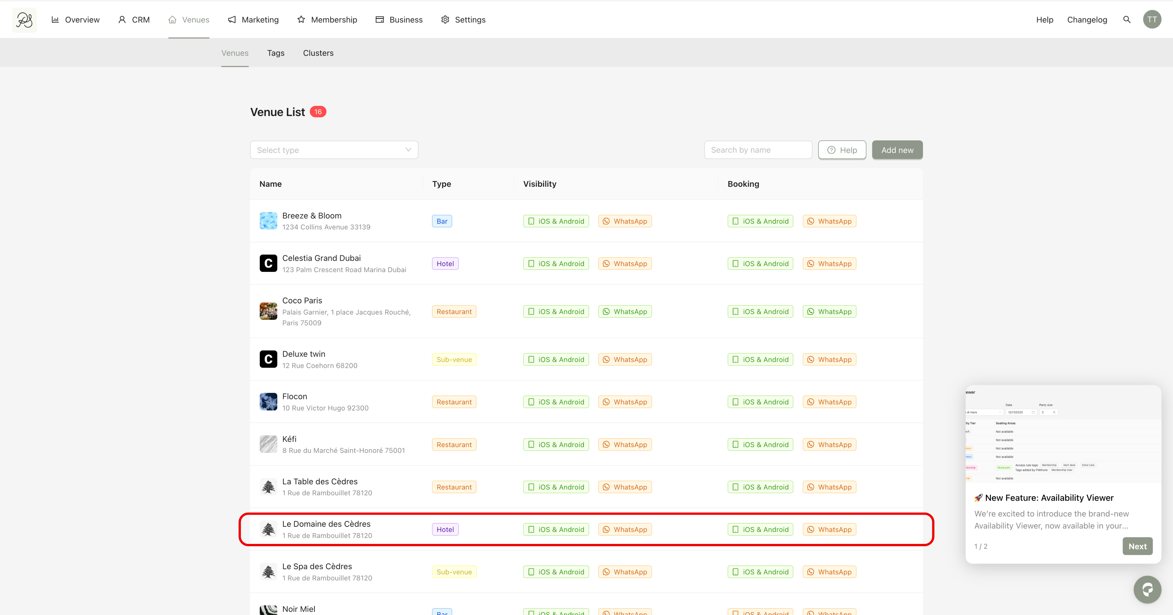 Step 1: Go to the Venues section and select the venue you want to configure.