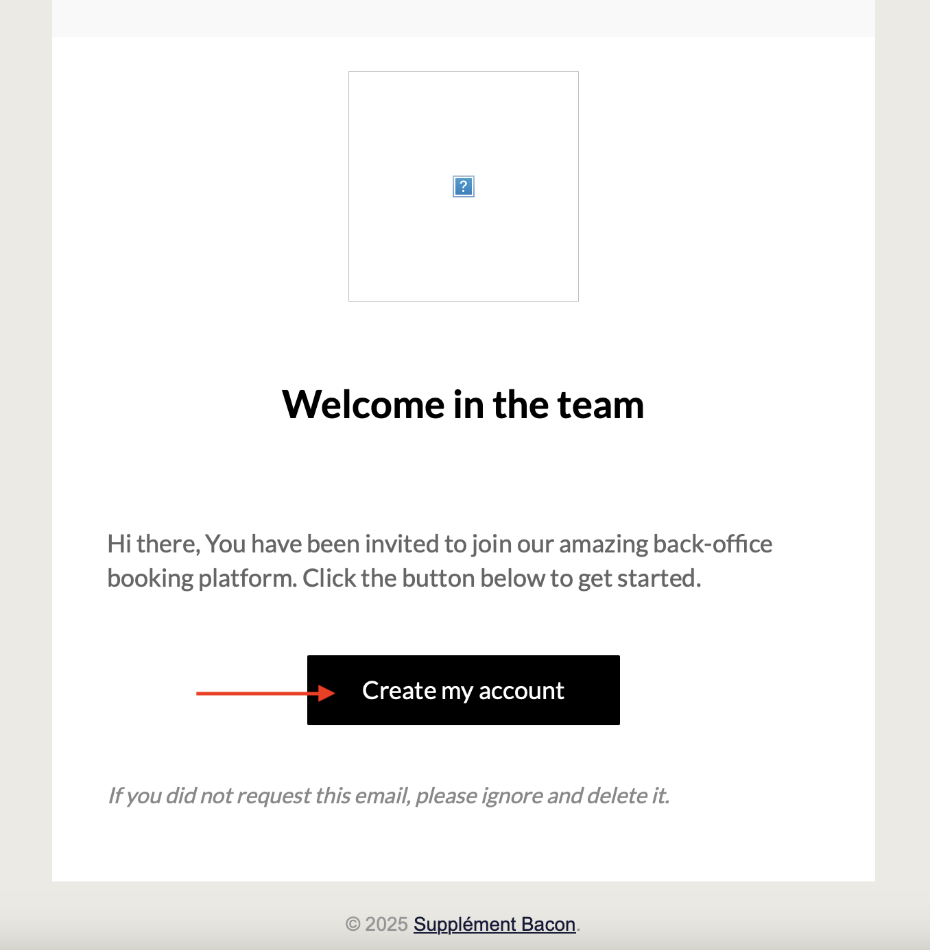 The invited person will then receive an email and simply needs to click on Create my account, as shown below.