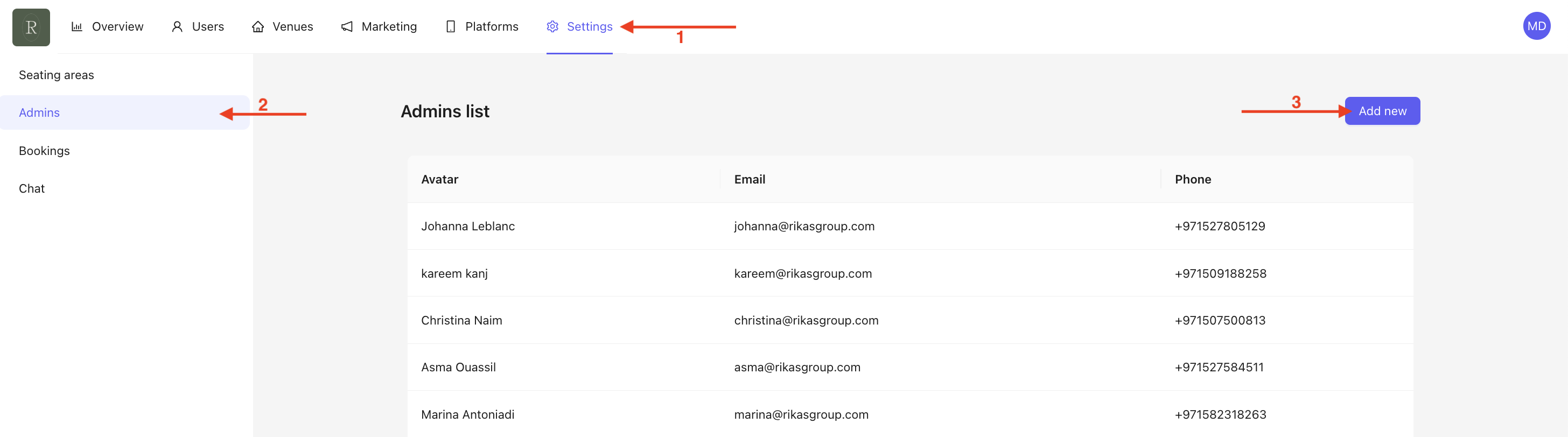 Click on Admin. You will then be redirected to the homepage displaying all administrators linked to the Back Office.