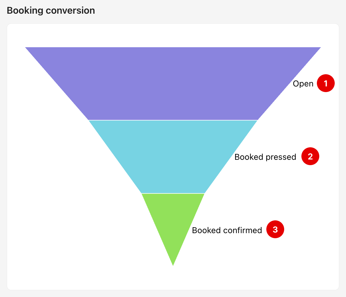 This funnel helps you understand whether members are interested in the event. For example, if many members open the event but few confirm bookings, you may need to improve the event description, price, or timing.