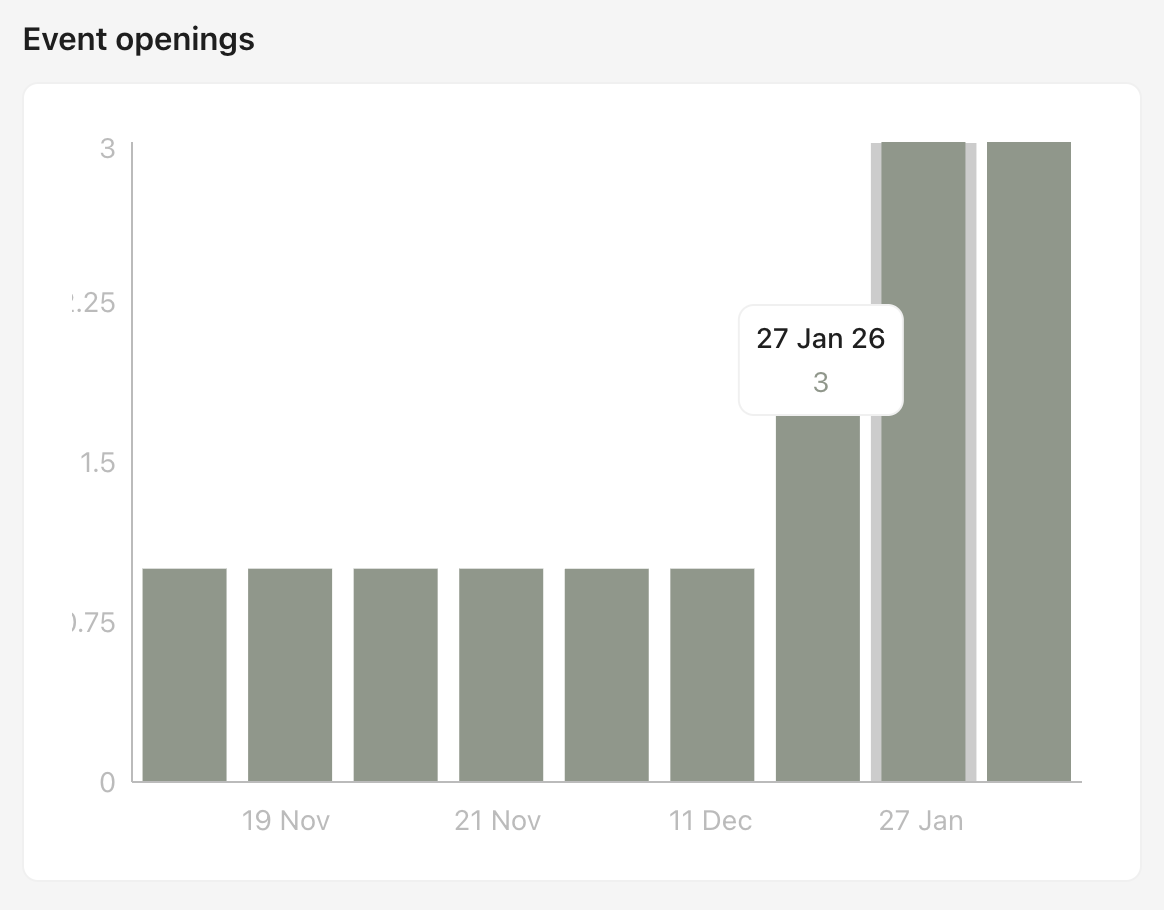 This chart shows how many times the event page was opened over time.